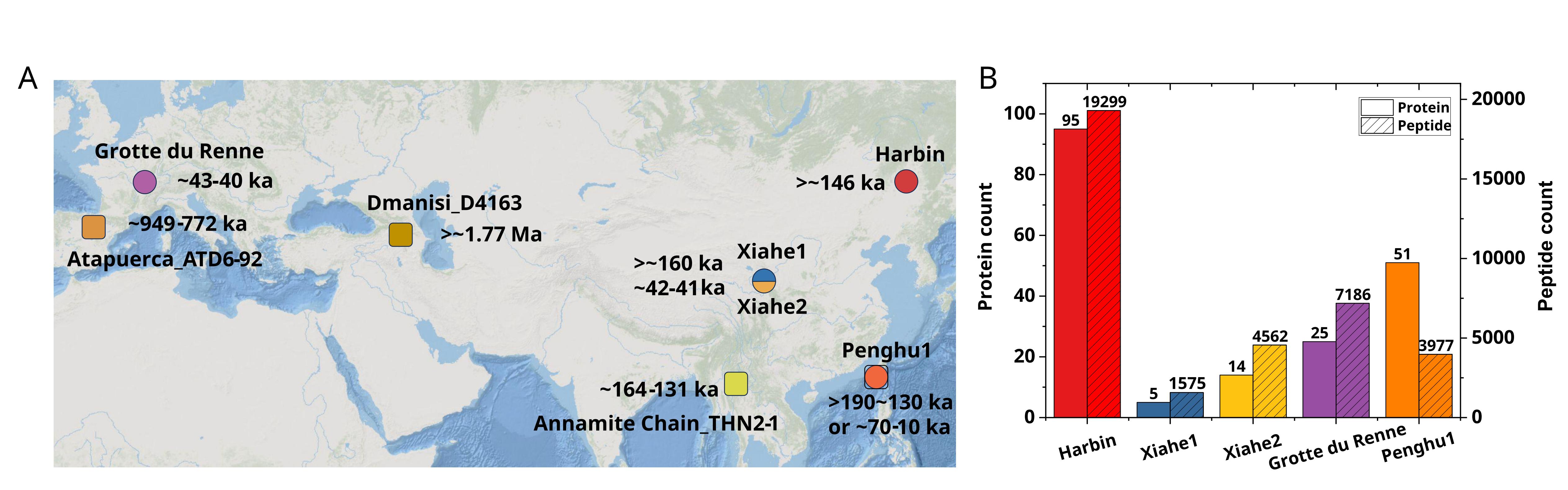 圖1更新世古人類個(gè)體的地理分布及其蛋白質(zhì)組特征(僅包含已報(bào)道的古蛋白質(zhì)組相關(guān)研究)。?