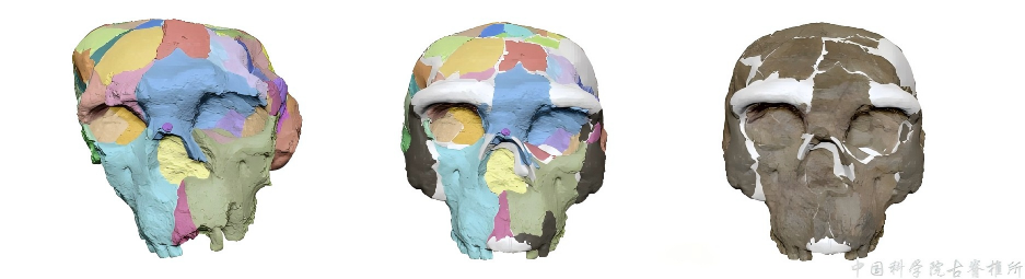 重建后的鄖縣人2號頭骨呈現(xiàn)出原始與進(jìn)步特征交融的形態(tài):低平的額骨和突出的吻部類似更古老的直立人或海德堡人;而扁平低矮的顴骨、更寬的后腦顱以及較大的腦容量,則與龍人以及大荔、金牛山、華龍洞、許家窯等地出土的中更新世人類化石相似。這件百萬年前的頭骨腦容量竟超過1100毫升。